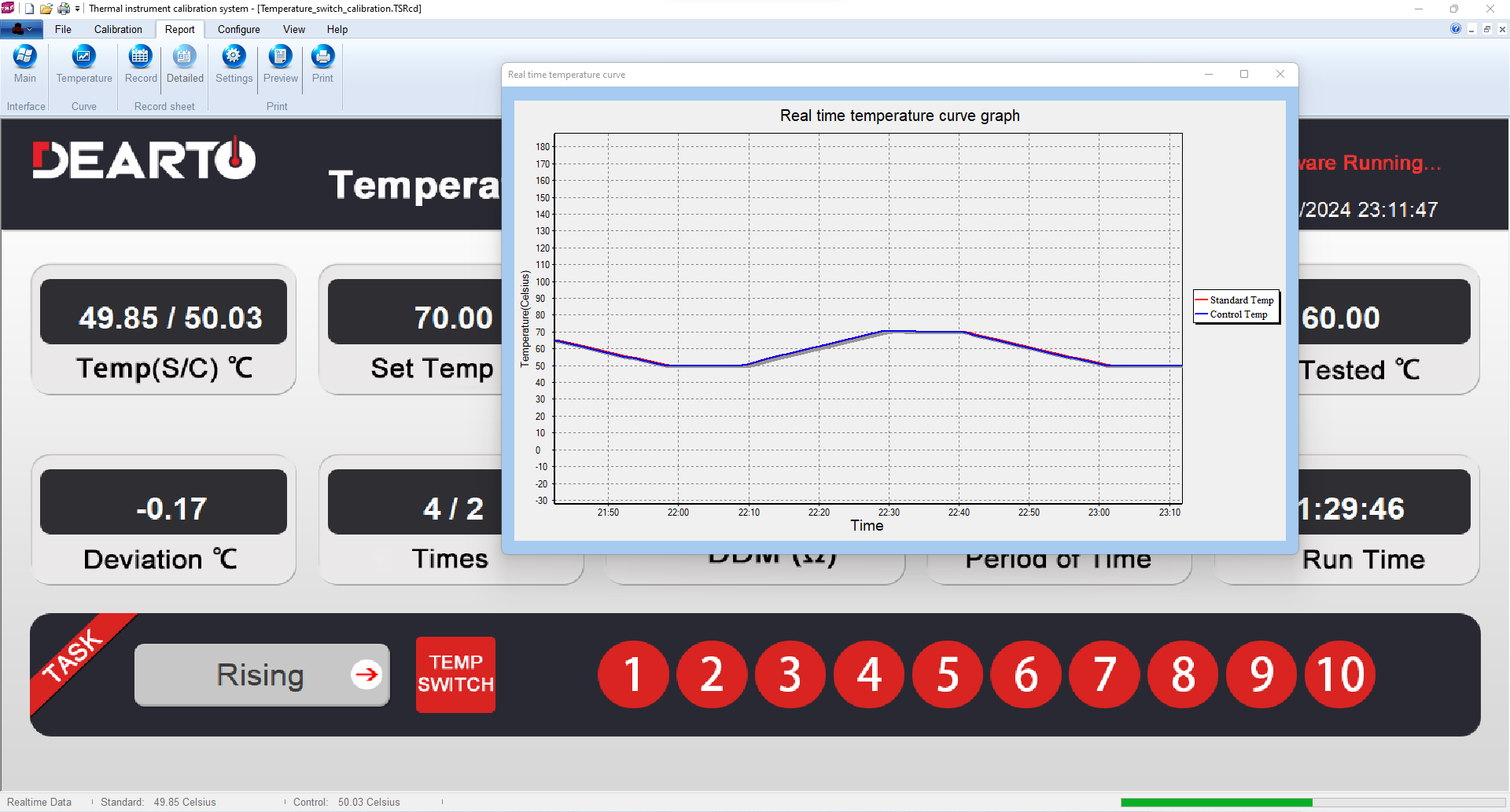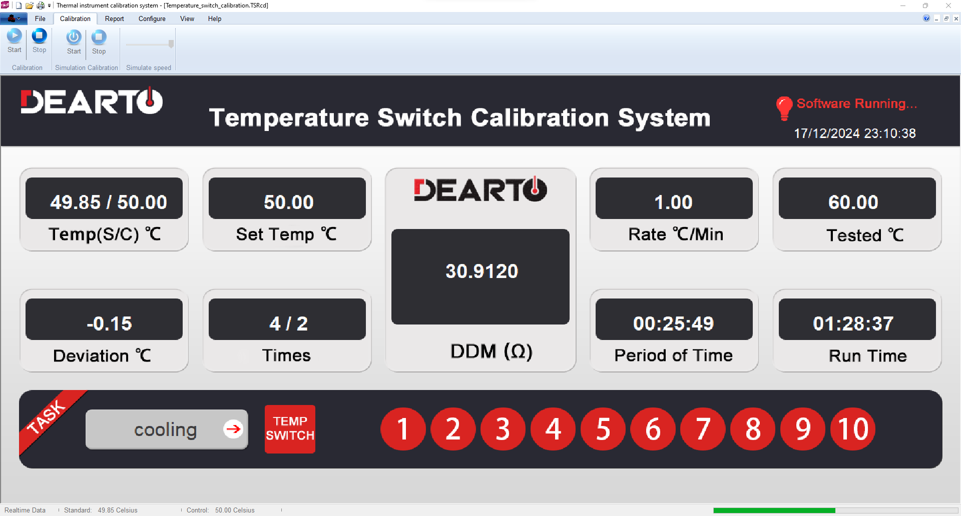 DTZ-TSS Temperature switching sensor calibration system is developed by DEARTO,and it is a system specially designed for testing and calibrating various temperature switch sensors. It consists of the system mainframe (including hardware and software), reference standard, intelligent thermostat bath and multi-channel scanning terminal station and accessories, which realizes the whole process from temperature control, on/off points temperature recording, comparing with the standard data and generating the test report.