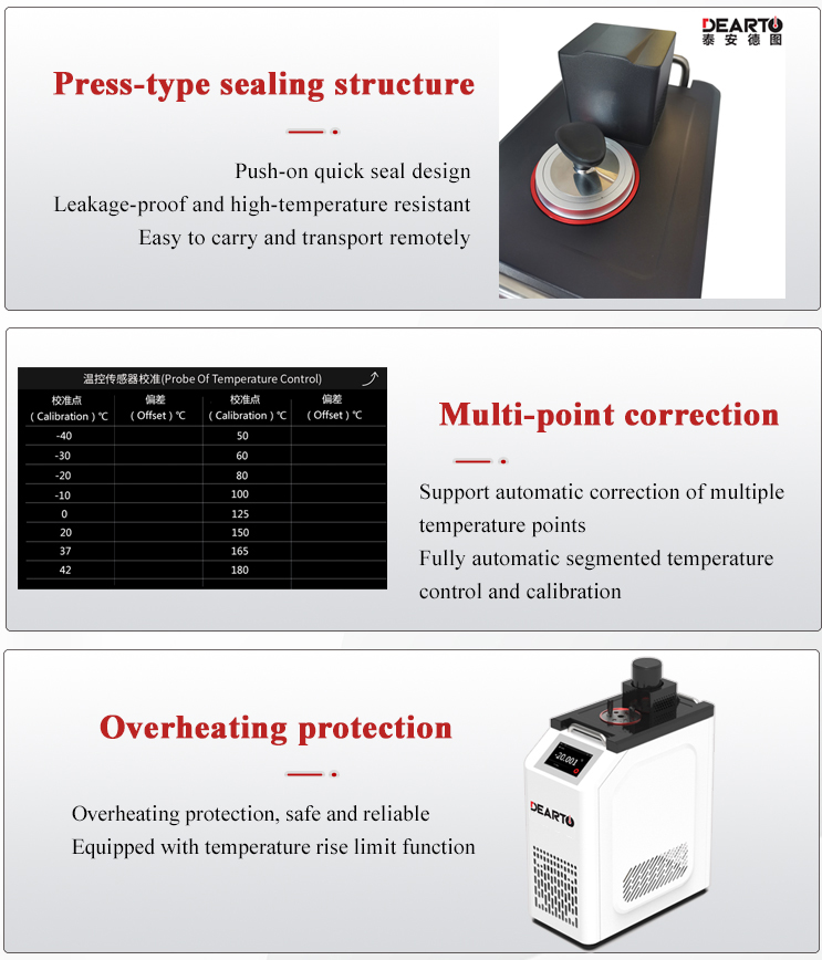 DTS-BG Portable Smart Refrigerated Calibration Bath is a kind of high precision automatic temperature calibration device, which has the characteristics of stable performance, uniform temperature field, accurate temperature control, etc. Fully enclosed refrigeration system, intelligent PID adjustment to achieve automatic temperature control.